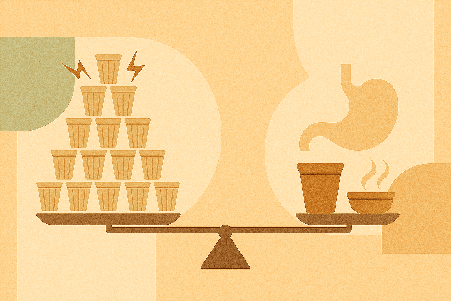 At the same time, both scientific and popular health writing warn that drinking too much strong tea, especially late in the day or with lots of sugar, can lead to